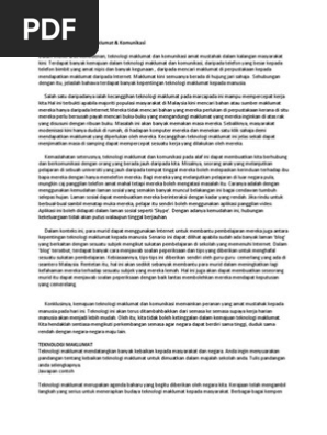 Contoh Karangan B Spm Faedah Teknologi Maklumat Kepada Remaja